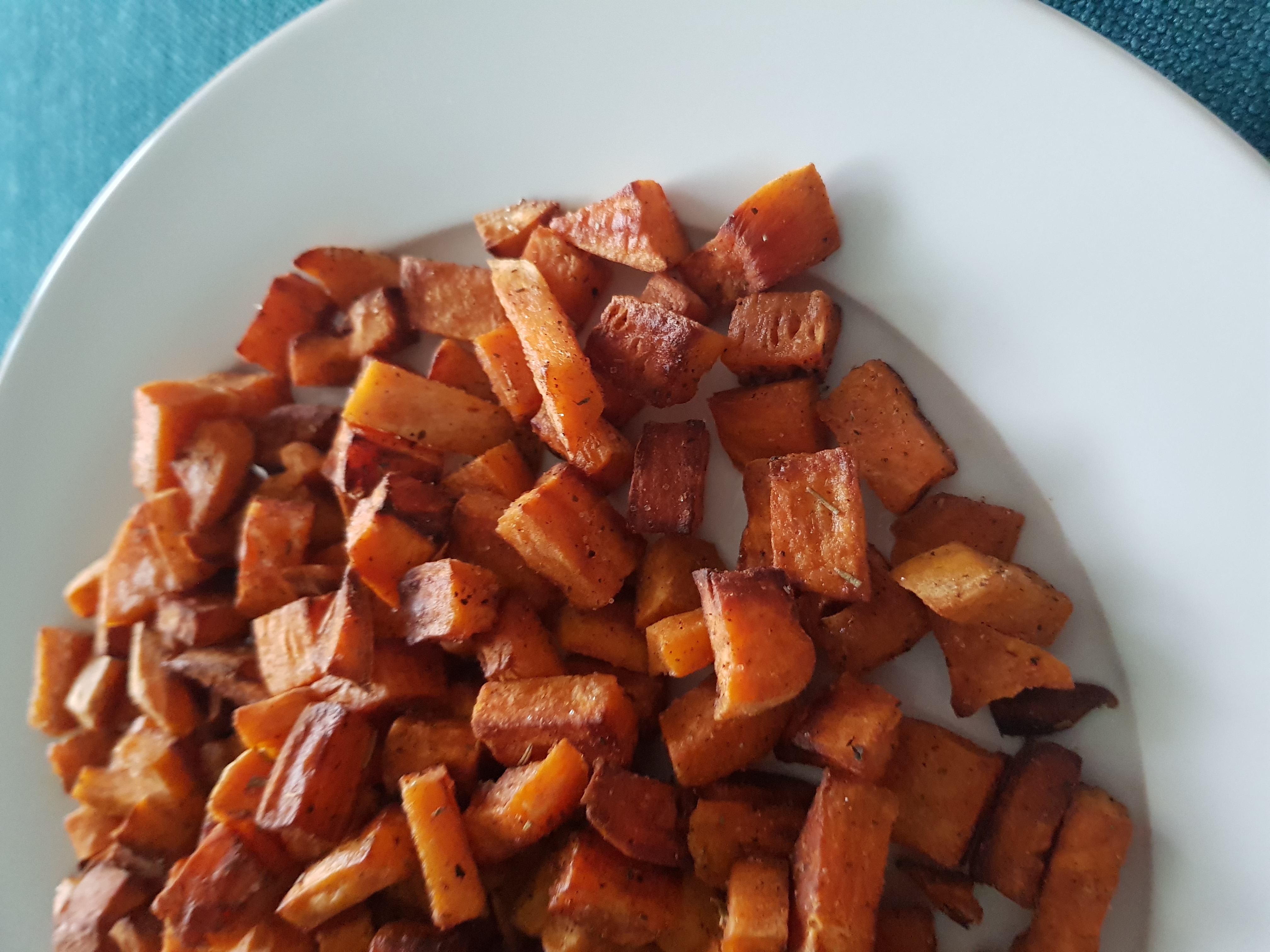 Scaldate bene l’olio poi aggiungete la batata. Salate con il mix per arrosto.