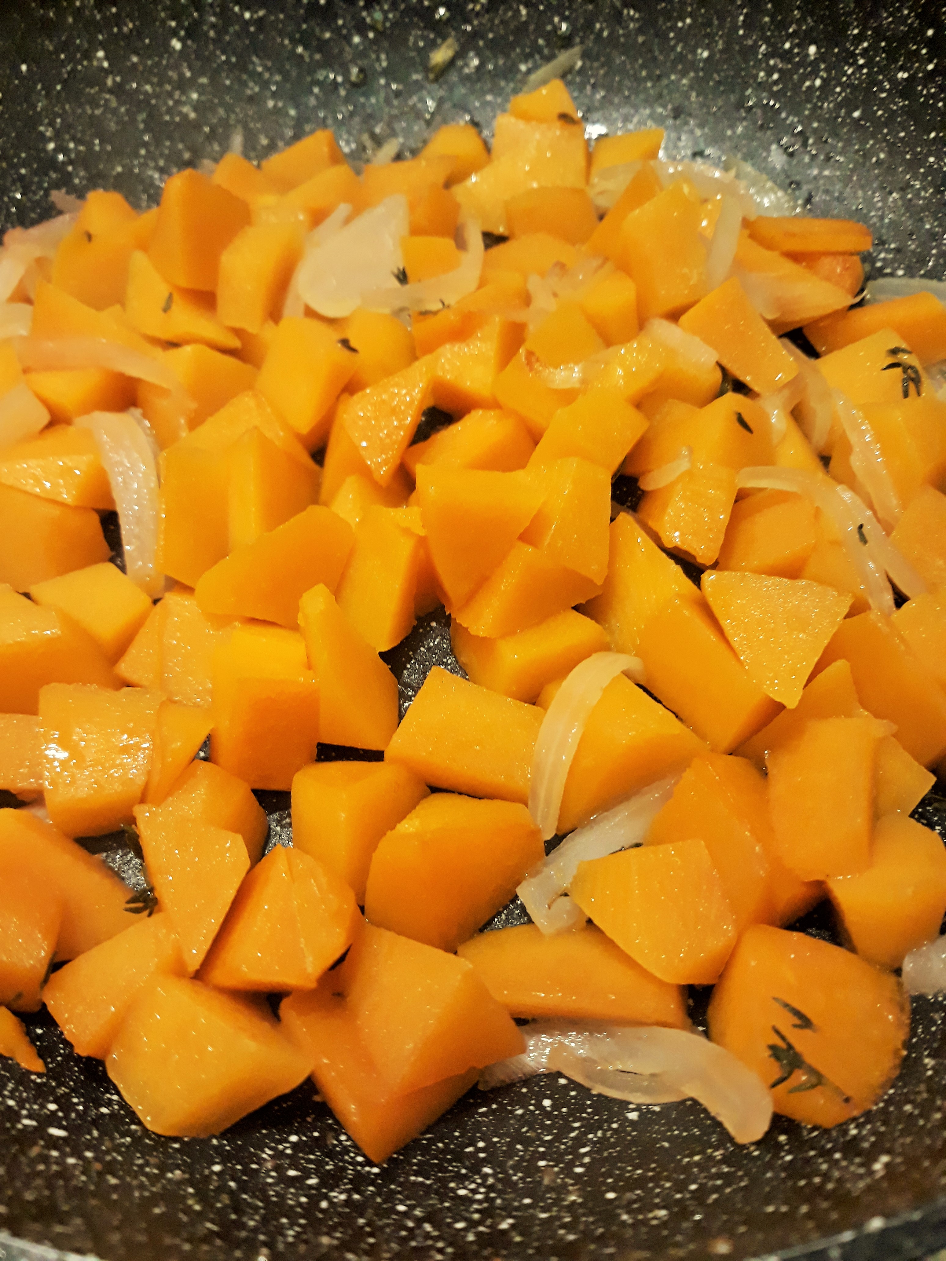 - Metodo di cottura estiva: versa la zucca tagliata in padella, aggiungi sale, olio (vinaccioli o riso) e salvia
