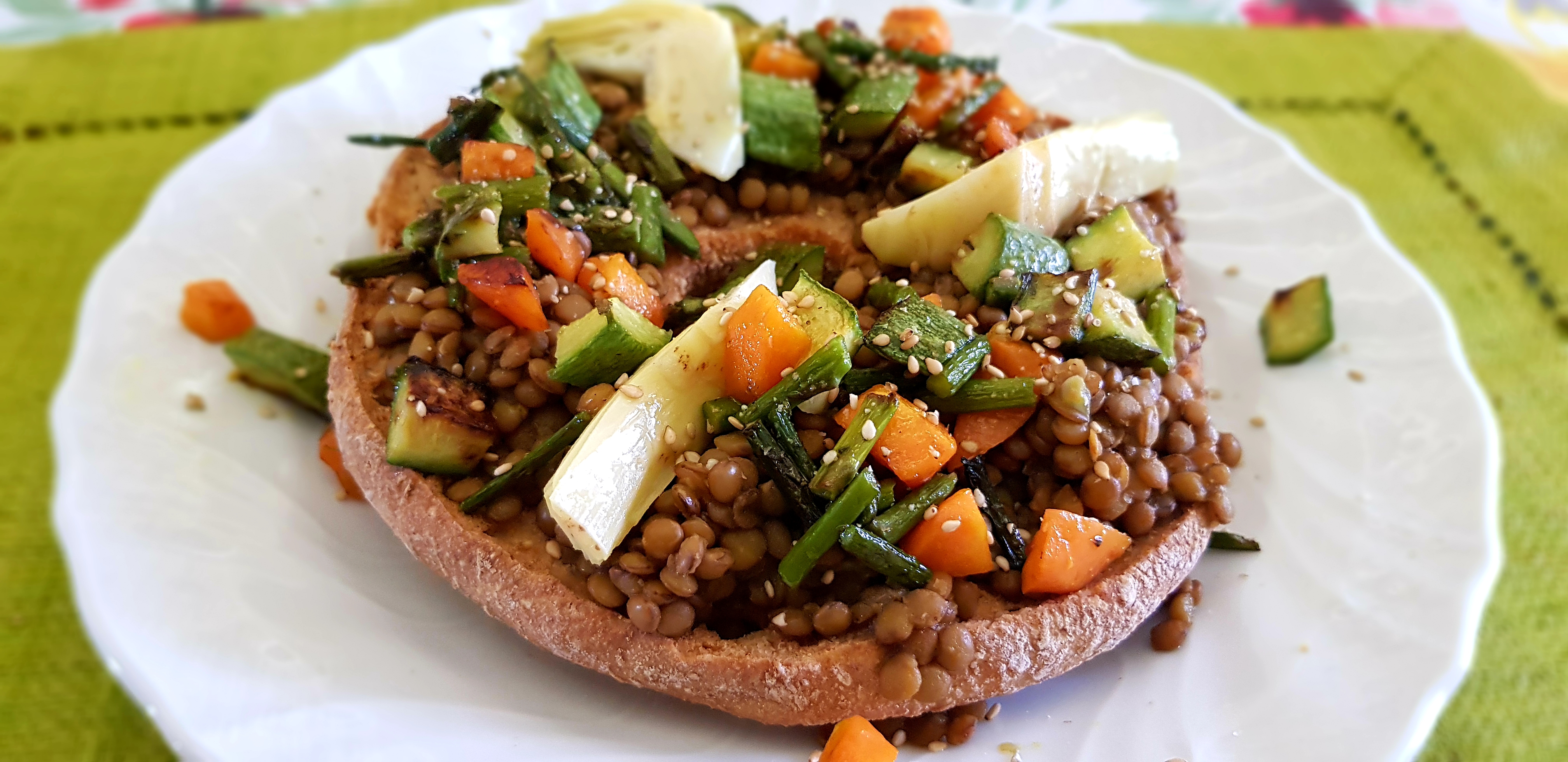 Cuocete in anticipo i legumi nel modo consueto (io li insaporisco in un trito di sedano, carota e cipollina, con ghee o olio). Lasciate raffreddare completamente. Servite su una fresella appena bagnata e aggiungete verdure colorate preferite.