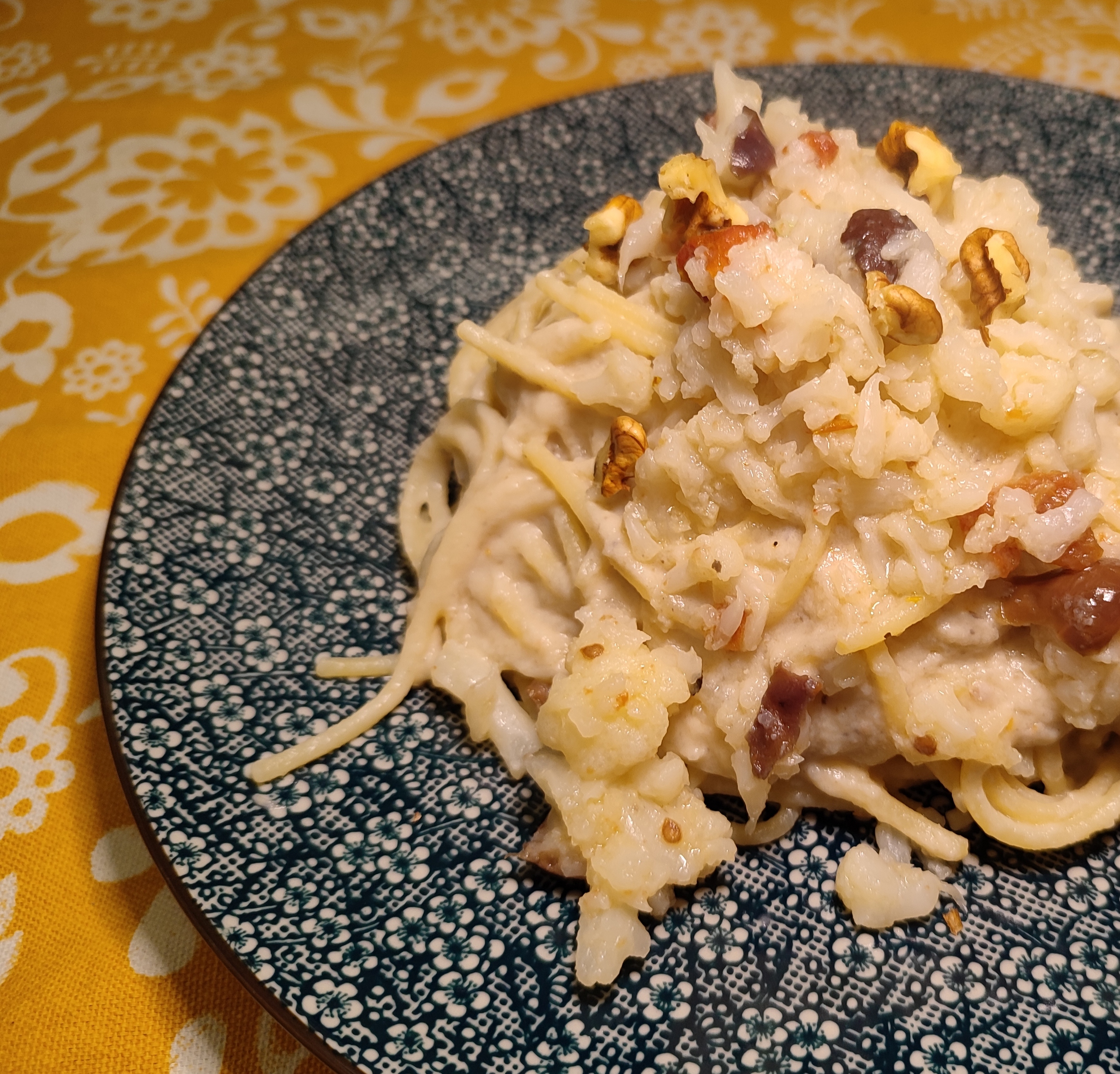 Ho scelto come formato gli spaghetti perché sono leggeri e quindi compensano la natura pesante del cavolfiore.
